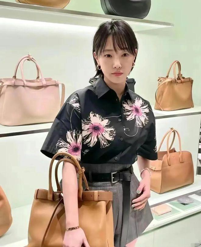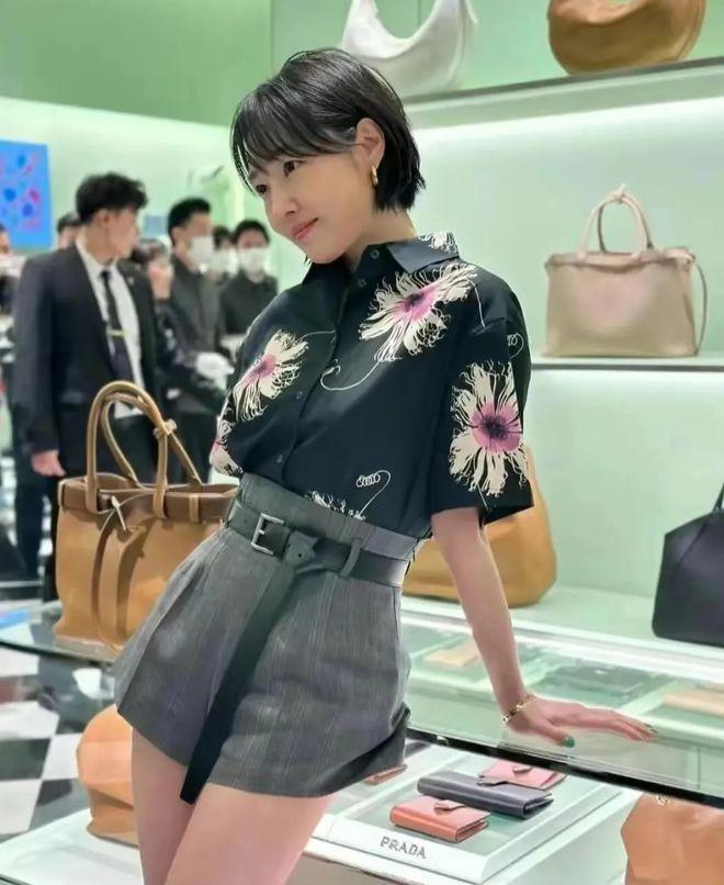 白百何在穿搭中展現了現代女性的時尚與優雅。黑色短袖襯衫上的粉色花朵圖案成爲視覺焦點,既打破了黑色的沉悶,又增添了女性的柔美與活力。短髮造型幹練利落,耳環的點綴更添精緻感。她手中的棕色手提包不僅與整體色調相協調,其金色釦環設計更是提升了包包的質感,展現出獨特的品味。。