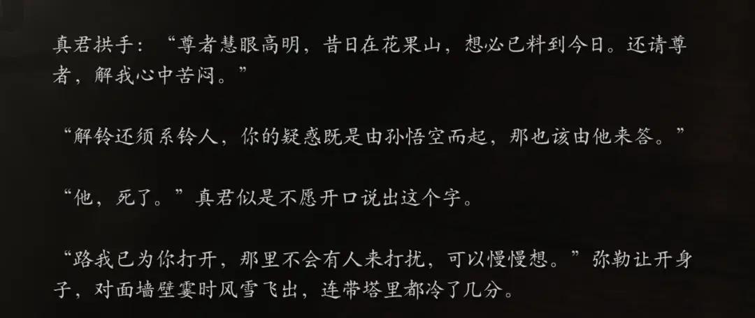 不過我們也可以看到,《黑神話:悟空》用寥寥數筆,便將二郎神對悟空感情刻畫得入木三分,遊戲文案對白月光的理解、對“替身文學”的拿捏,以及對互聯網時代造梗需求的調動,都頗見功底。