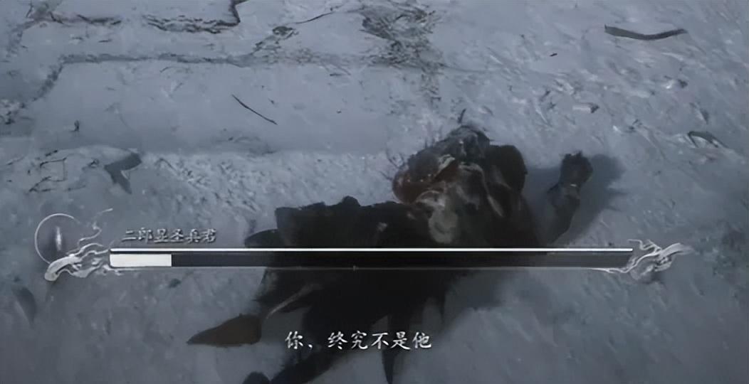 如果你不小心在與二郎神的戰鬥中敗下陣來,他不會像其他妖王一樣在你臨終前嘲諷兩句,而是會帶着一絲遺憾的語氣感嘆道:“你,終究不是他。”