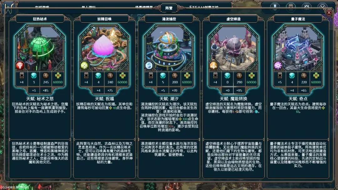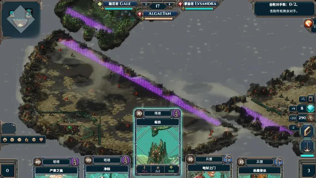 根據陣營的天賦效果不同,玩家可以一直“烏龜憋氣流”,永遠只建造偏向攢經濟的建築和剛好能防住敵兵的工事,等到後期直接爆一波大的一波推平;或是直接在前期火力全開,直接幾波雜毛“狼騎兵”莽上去,在對面放鬆警惕的時候偷雞取勝。