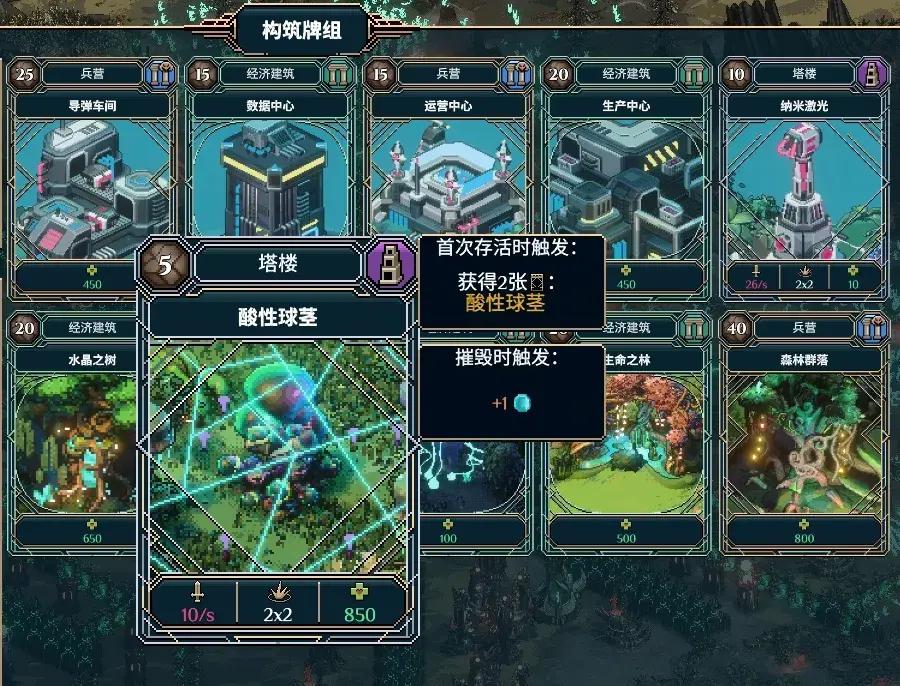 從遊戲在Steam頁面的官方介紹,“一款採用牌組構築機制的即時基地塔防策略遊戲”,就能看出它在玩法上“縫”進了多少東西。