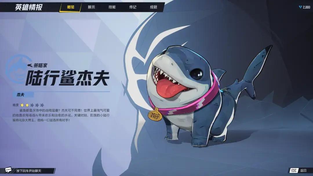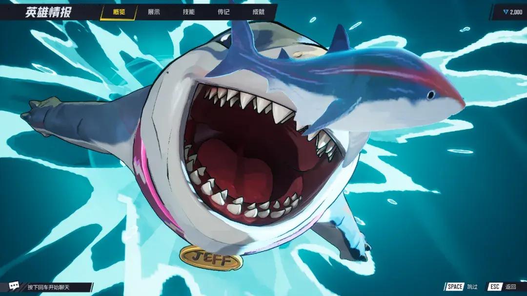 比如遊戲中的“陸行鯊傑夫”,在聽到這個名字的時候,我以爲會看到一個孔武有力、長着鯊魚頭的壯漢,或者是什麼類似“奪命三頭鯊”之類Cult片風格的怪物,但實際進入遊戲後,看到的卻是一個吐着舌頭、長着四條小短腿酷似小狗的萌物,不光能噴出水柱治療隊友,還能潛入地面只露出鯊魚鰭四處遊走,而換彈動作則是仰面躺下,一口吃掉一條魚,那靈動和可愛勁快要溢出屏幕,讓人不禁猜測這個小傢伙的漫畫和周邊一定賣得不錯。