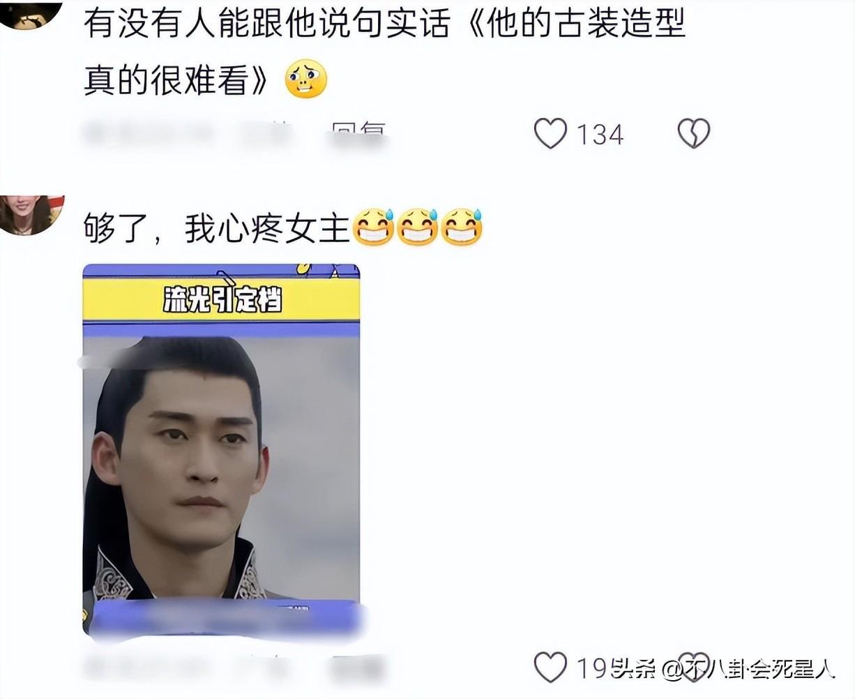 然而,胡一天也有明顯的短板,那就是不適合穿古裝,他是長臉,戴上頭套把頭髮束在後面,只會顯得臉更長,視覺上很有衝擊感。