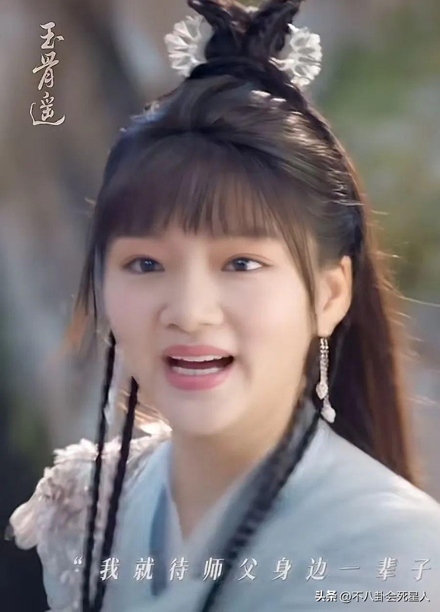 再看任敏的古裝,《玉骨遙》裏她被女配們豔壓,一方面是妝造不給力,她是短圓臉,不適合留劉海,造型師卻反其道而行之,給任敏弄了一個劉海,顯得又憨又土。