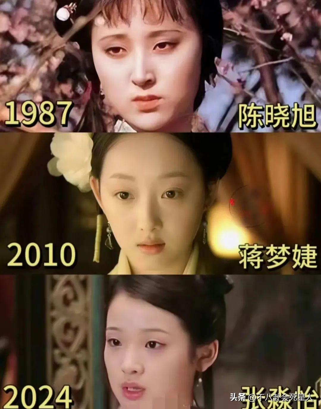 把三版林黛玉放一起來看,網友們表示“一黛不如一黛”,明顯能感受到現在娛樂圈門檻越來越低,審美降級嚴重,張淼怡版本的林黛玉,別說是和陳曉旭相提並論,就連蔣夢婕,也比她好太多。