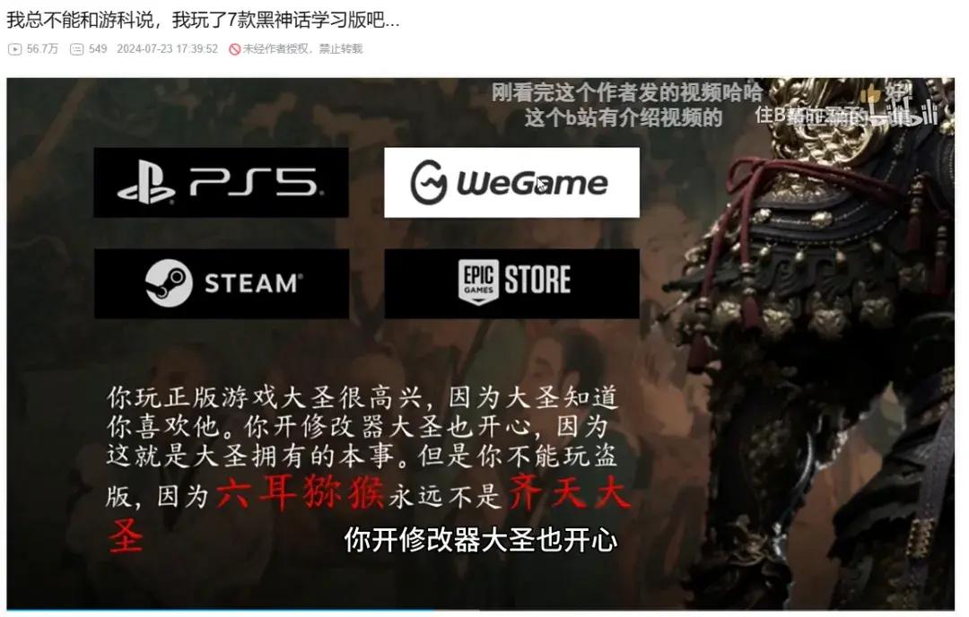 有趣歸有趣,慶幸來講,《黑神話》目前沒有盜版,依舊是停留在玩梗的階段。