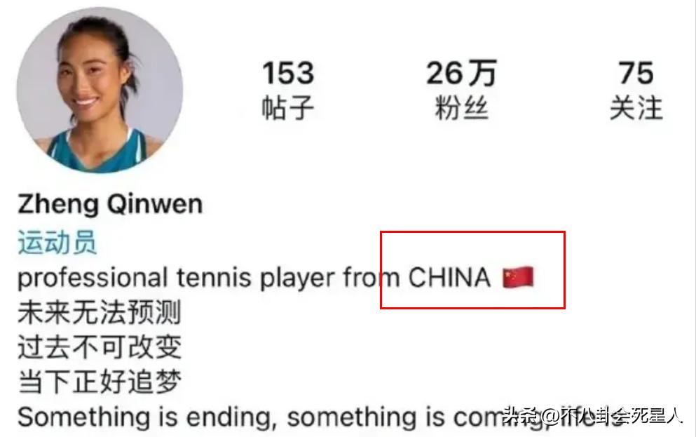在社交平臺上,鄭欽文的自我介紹裏也明白寫着自己來自中國。