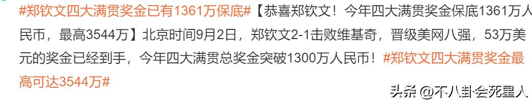 而有媒體報道,鄭欽文今年四大滿貫保底總獎金也高達1361萬人民幣。