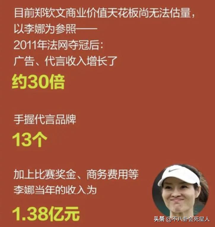 而李娜當年法網奪冠之後各種代言廣告收入增長了大約30倍。