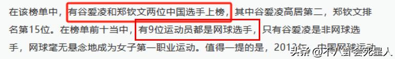 與此同時,鄭欽文的成績背後給她帶來的是巨大的商業價值。因爲鄭欽文是網球運動員,而網球是世界上商業價值最高的運動項目之一,這從2023年福布斯公佈的全球女運動員收入榜就能看出,前10名裏有9名都是網球女運動員。
