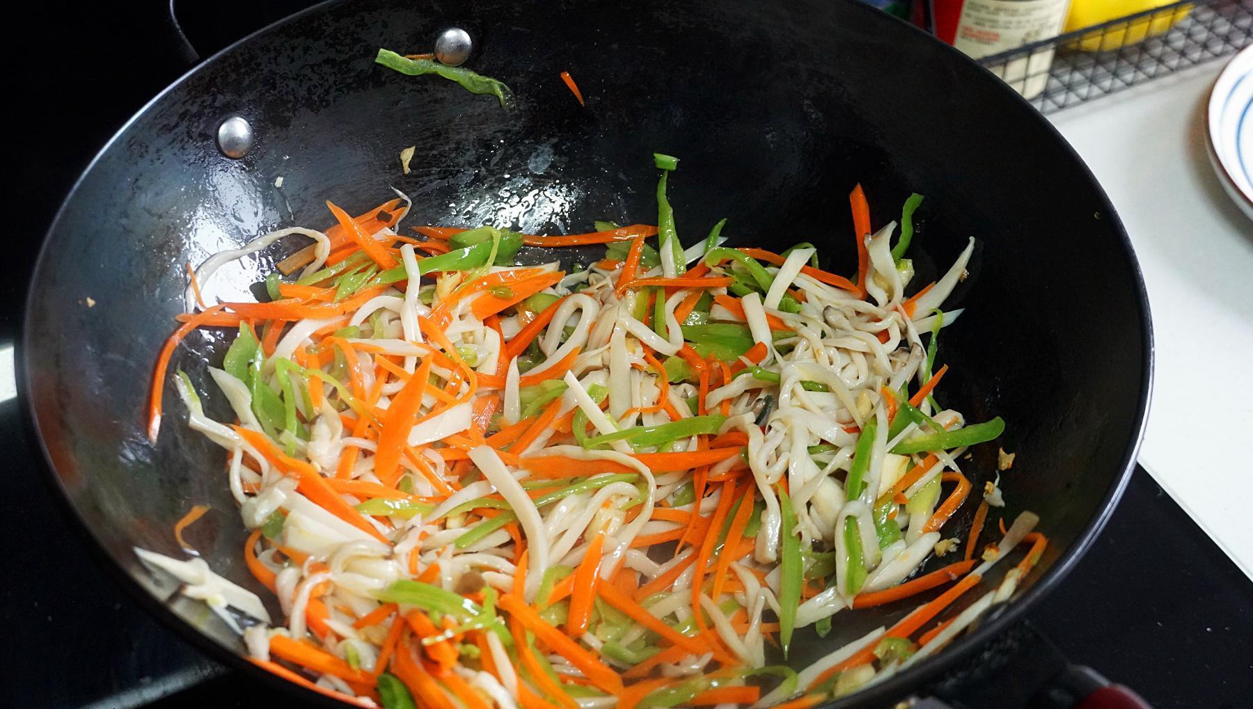 翻炒一下收個汁兒就可以盛出來了,這盤菜有點像素版的魚香肉絲哈,清清爽爽的,喫起來還不錯;