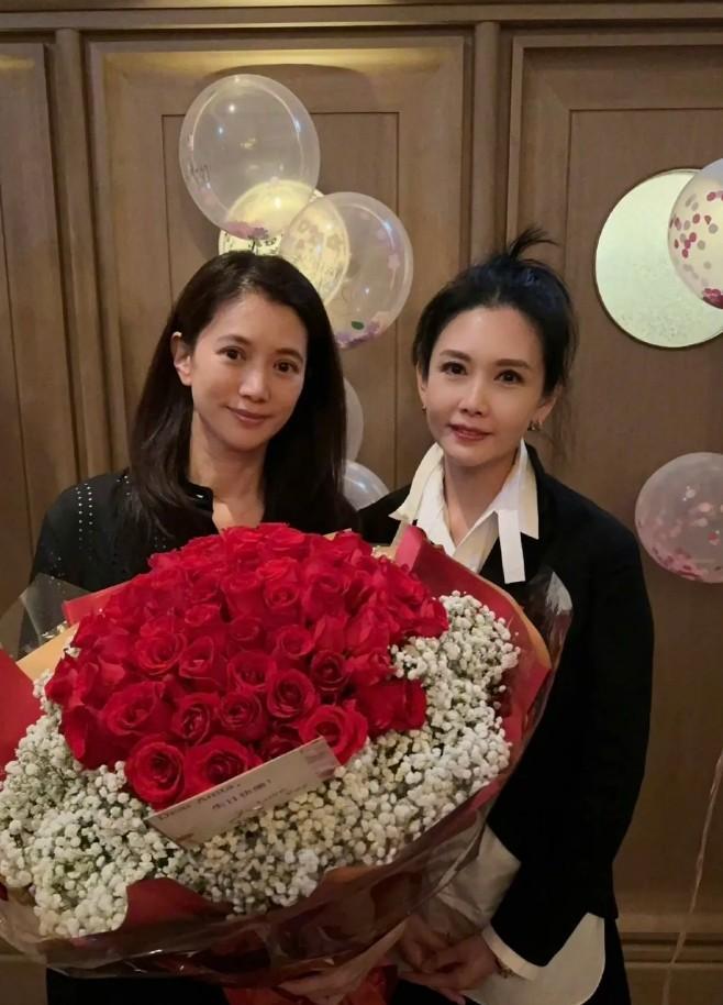抱着一大捧紅色玫瑰花的袁詠儀,正對鏡頭幸福的笑着與好友合照,都說女人嫁的好,越來越年輕,袁詠儀就是一個顯例,52歲了面色紅潤,散發氣質優雅大方。