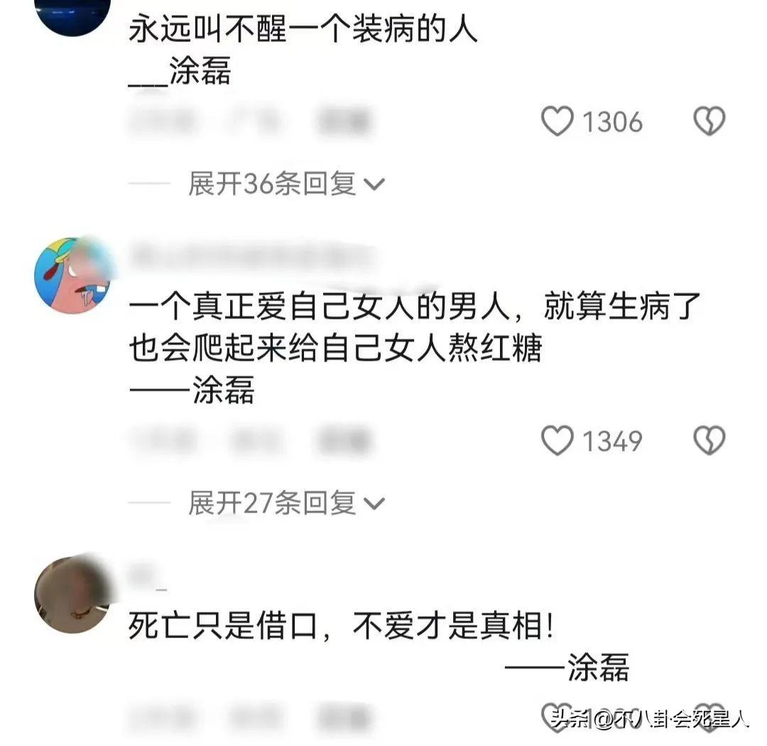 當時,看到塗磊生病逐漸好轉的視頻,本以爲大衆會祝福他早日康復,沒想到評論區卻翻車了,很多人用塗磊以前說過的“雞湯”比喻,喊他趕緊起來煮飯熬紅糖。