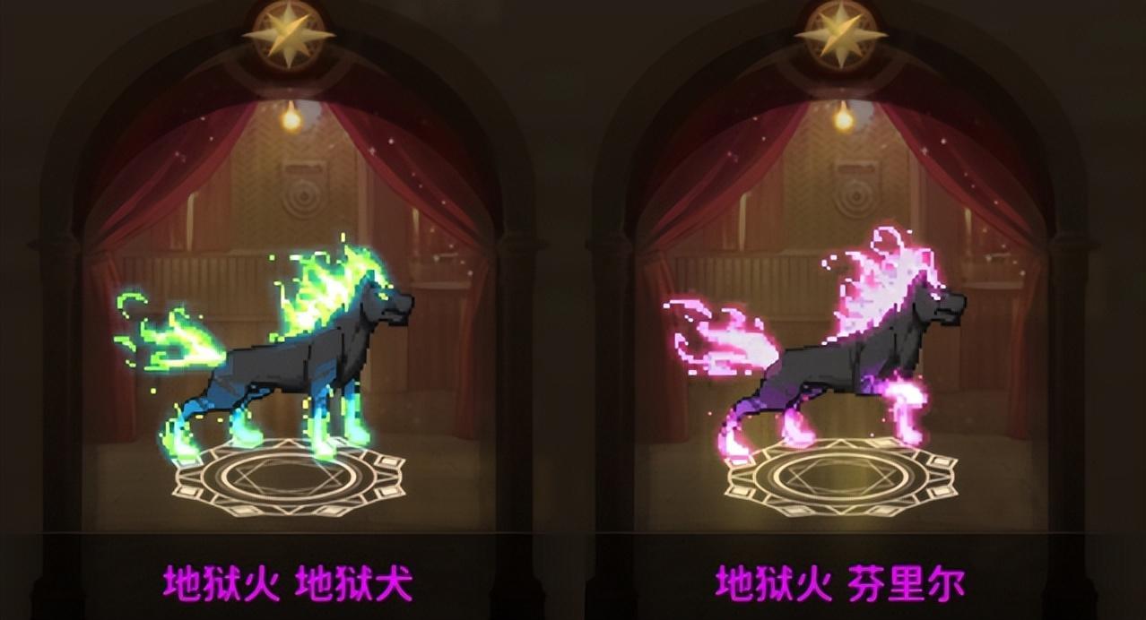 說實話,這個差距也不算大,但是呢有一說一,這個寵物的外觀我特別鐘意,渾身冒着綠色/粉色火光、腳踏火焰,猶如在雲中穿行,堪稱手遊目前爲止最帥的寵物狗了。