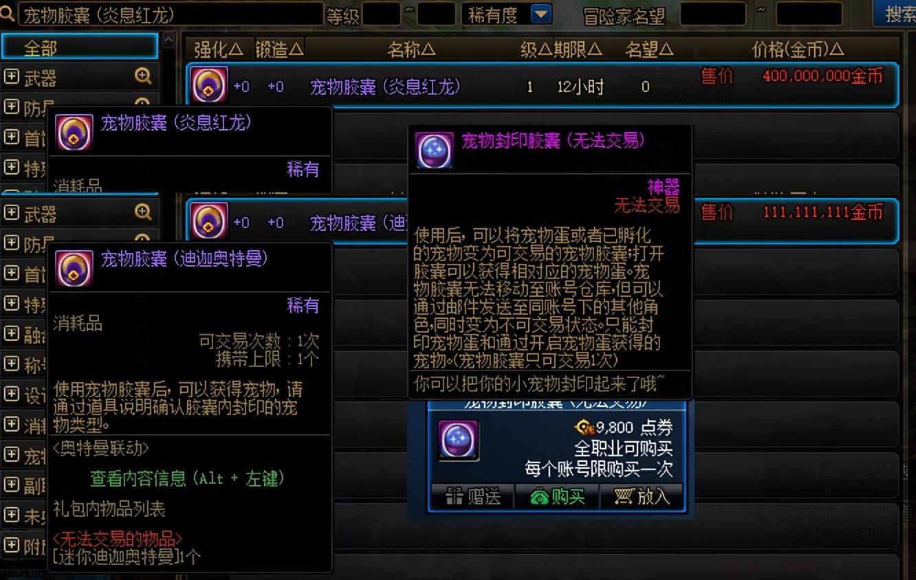 比如稀有的“兔精靈隊長”“炎息紅龍”“迪迦奧特曼”等,售價都在好幾千萬甚至上億金幣!