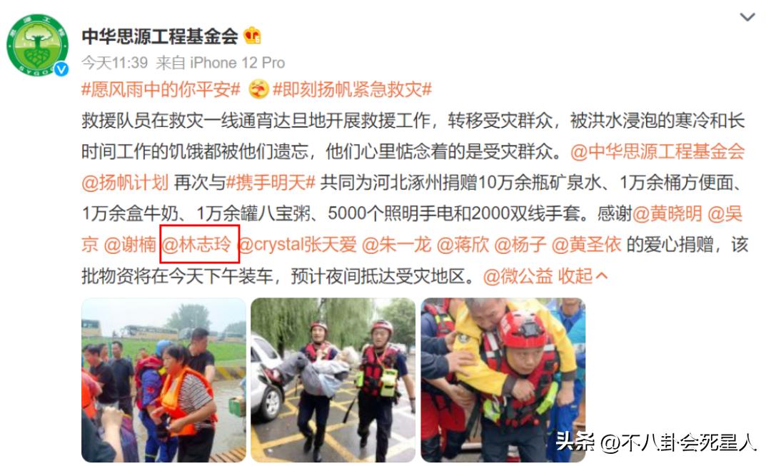 去年甘肅地震期間,林志玲通過黃曉明的“攜手明天”愛心基金捐贈了物資和資金。