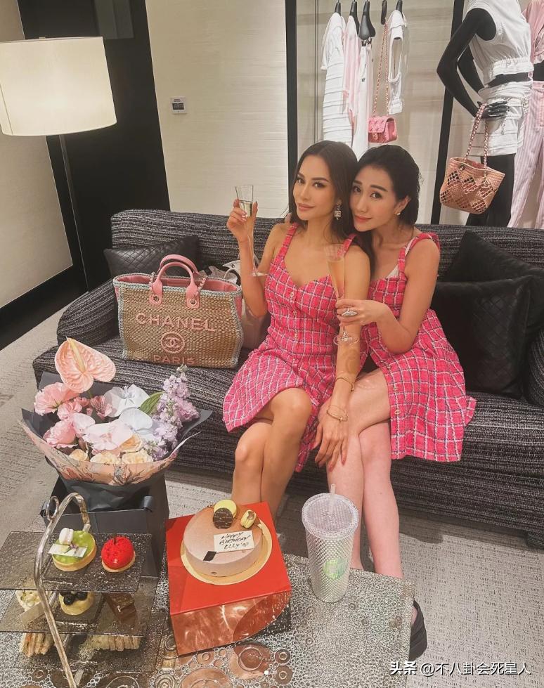 林心兒生日時,四太梁安琪的大女兒何超盈更是一副“配角”姿態,心甘情願跑去討這位名媛大小姐的歡心,兩人雖說是穿了同款“姐妹裝”,可何超盈一臉“獻媚”狀,多少丟了賭王家的面子。
