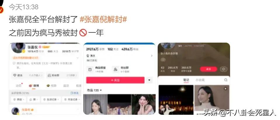 這讓人想到前不久,和楊穎同樣經歷“瘋馬秀”風波的另一位女星張嘉倪的社交賬號終於被解封了,但當時很多網友也是不看好張嘉倪能在內娛“復出”,而張嘉倪解封賬號後確實至今沒什麼行動。