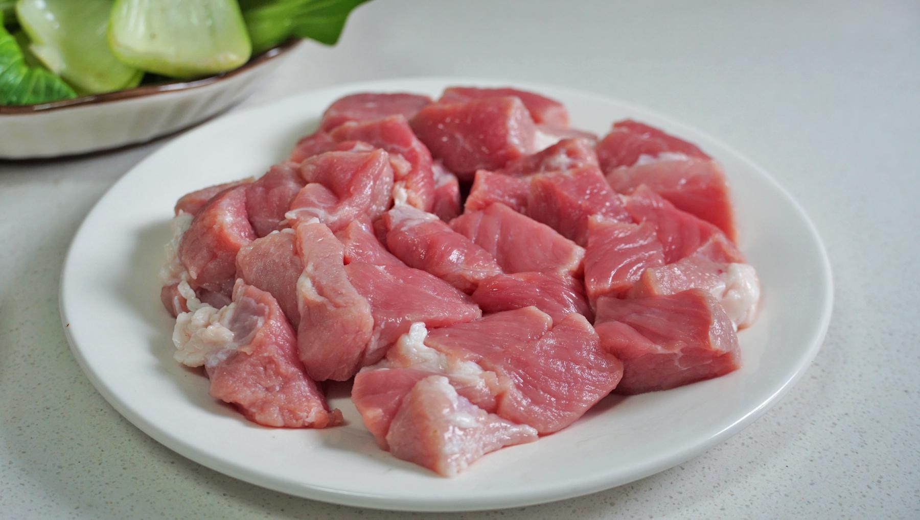 3、瘦肉1小塊兒,清洗乾淨後切片裝入大碗裏。醃製加鹽、生抽、料酒、薑絲、胡椒粉、生粉、攪拌均勻。