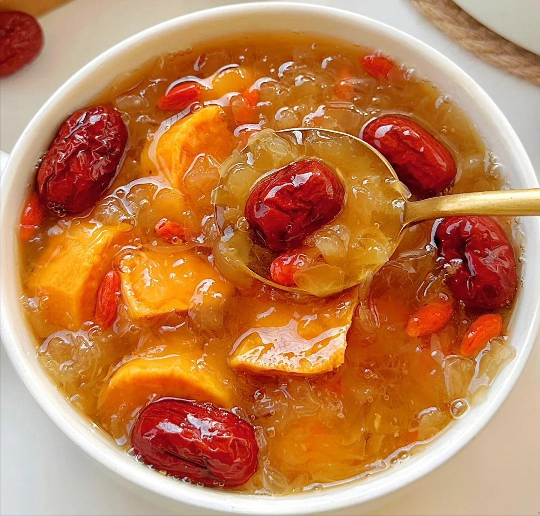 5、最後加點冰糖和枸杞,銀耳湯就煮好了。