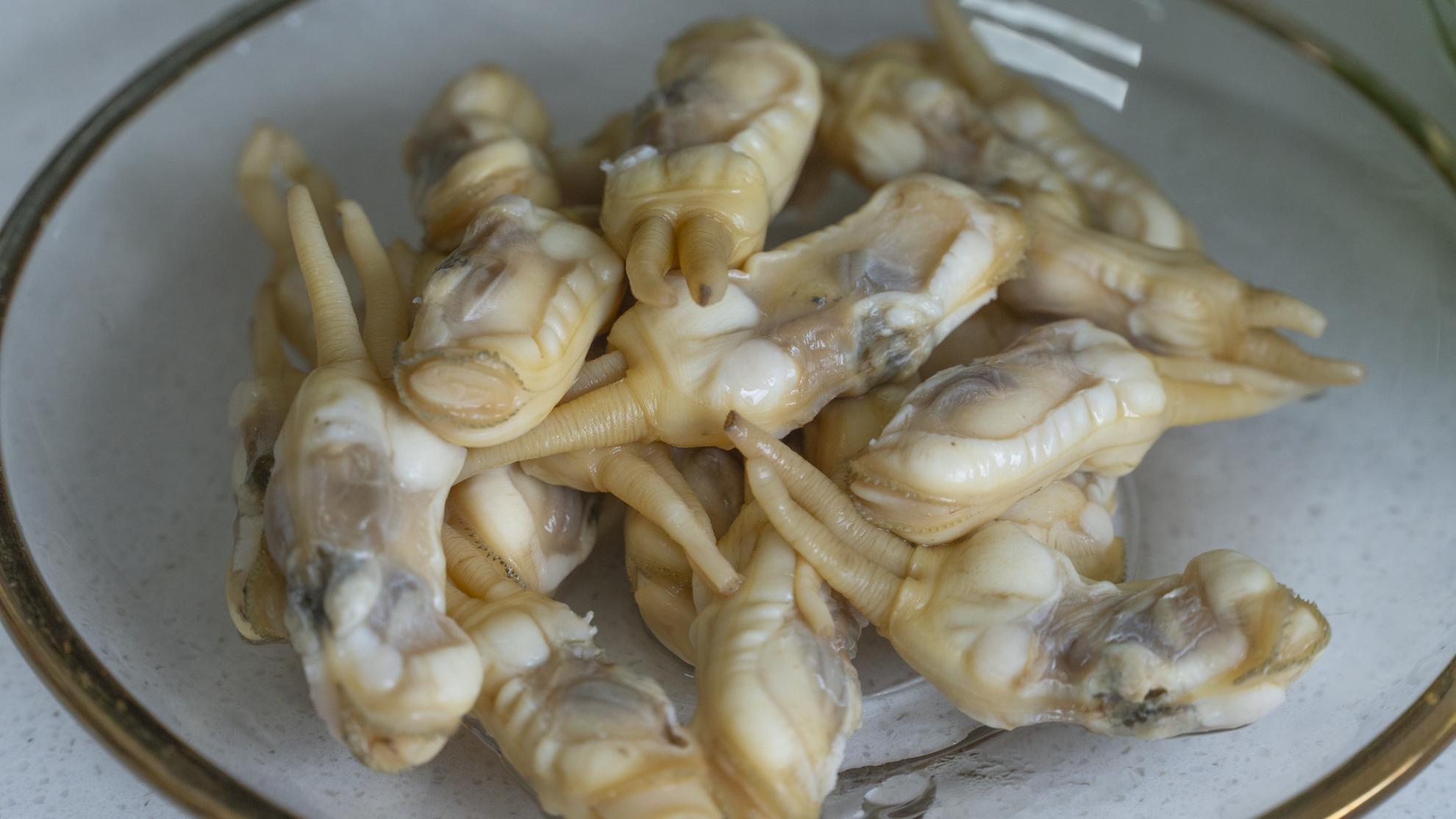 4、煮開後撇去浮沫,然後撈出蟶子,放涼後去殼取出蟶子肉,順便把黑線也處理乾淨。