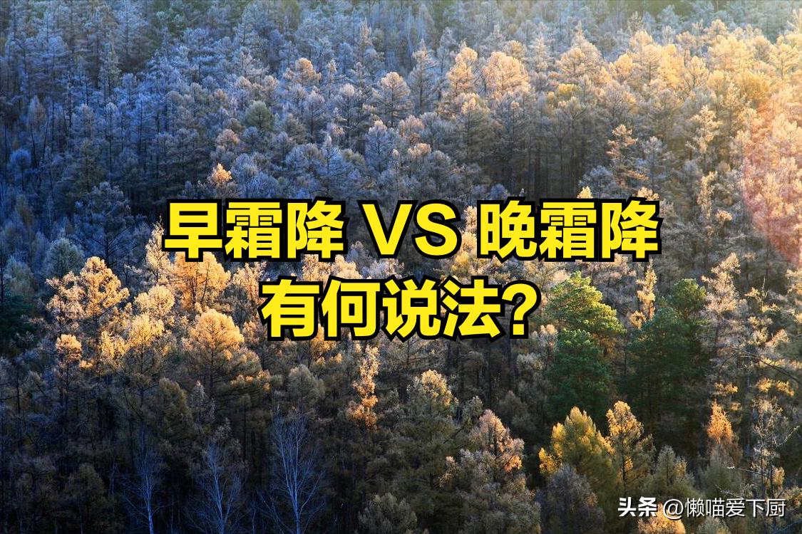 在老傳統看來,雖說霜降屬於(農曆)九月節氣,但根據其交節所在的具體日期,還有早晚之分,主要以月中爲界。如果一年之中的霜降交節早於農曆九月十五,就屬於早霜降,反之則是晚霜降。