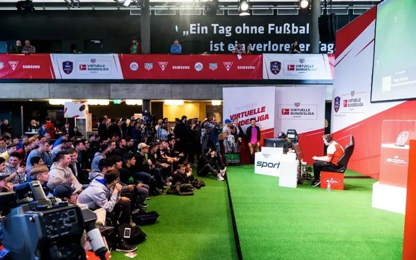 德國早在2012年,就組織了名爲“Virtuelle Bundesliga”(虛擬德甲)的官方足球電競聯賽,在2018年時已經有15支德甲球隊報名,當年比賽場地甚至來到了德甲豪門多特蒙德的足球博物館內:
