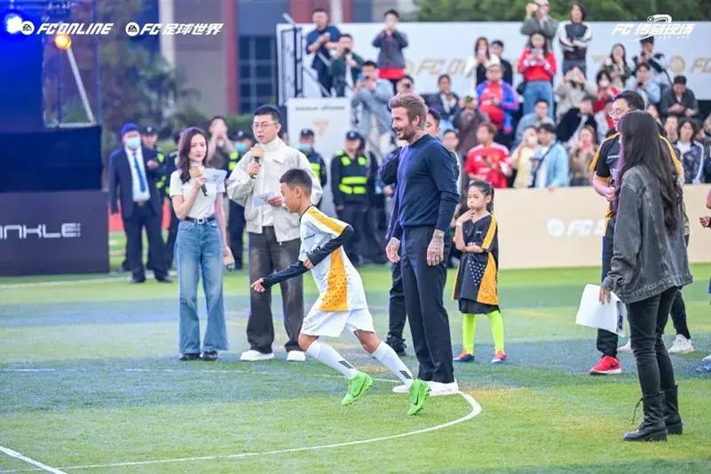 另一方面,活動也從線上延續到了線下。現場貝克漢姆也與前國腳孫繼海發起的“海選未來”足球青訓計劃的小球員們來了次“同場競技”,親自指導孩子們踢球。