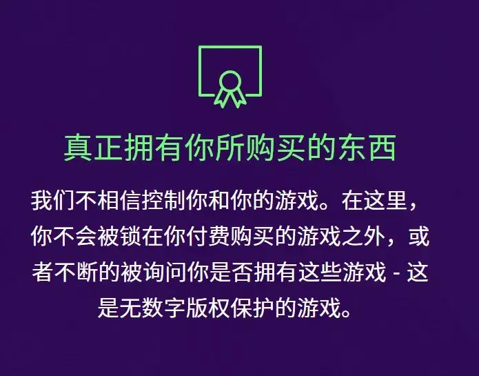 相比主流的Steam等遊戲零售平臺,GOG一直有其獨特的優勢。他們銷售的都是DRM-FREE的遊戲,這意味着玩家可以通過下載離線文件在任何電腦上安裝購買的遊戲,也可以直接將遊戲複製粘貼分享給其他人,整個過程完全不需要聯網,也不依附於GOG平臺。