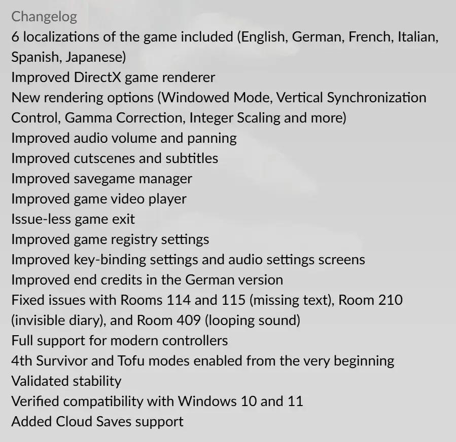 此外,GOG還爲其中一部分遊戲更新了更好的音頻與畫面,適配了新的手柄,甚至是遊戲性上的改進。例如在GOG版《生化危機2》中,原本通關後作爲彩蛋出現的“第四生還者”模式與“豆腐”模式改爲從遊戲最開始便可以遊玩了。