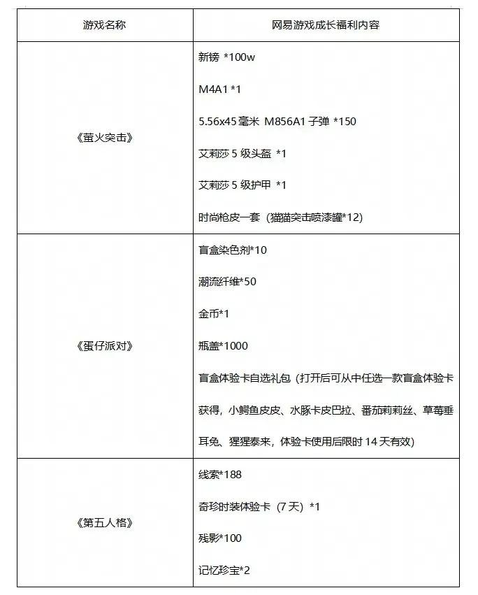 這些公告都表示,將爲受停服影響的玩家發放一系列“專屬福利”,只不過要在其他的網易遊戲裏領取,包括《螢火突擊》《蛋仔派對》和《第五人格》等。