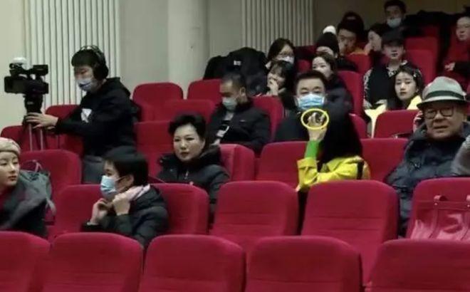 坐在位置上的宋祖英,身邊的人都穿的特別沉悶,唯獨只有她,一襲明黃色顯得特別吸睛,而且手上的鴿子蛋鑽戒十分搶眼。在黃色外套裏,宋祖英疊穿了一件綠色打底衫,雖然都是高飽和度的顏色,但是卻完全不違和。