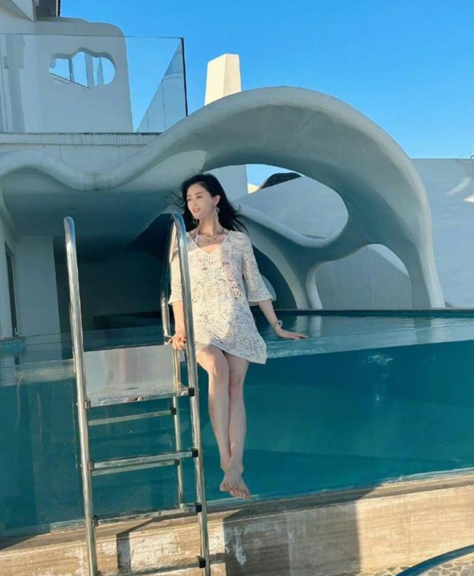 蔣欣是屬於很典型的氣質美人,而且身材豐裕飽滿,很多衣服都能夠輕鬆撐起來,像這種網格款式的V領短裙,內搭印花款的比基尼,留着一頭長髮,露出纖細白皙的雙腿線條,實在是太美了,看上去根本就不像41歲,比很多年輕人狀態都好。