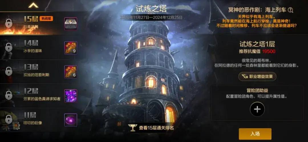 “試煉之塔”開放新賽季,持續時間爲11.27~12.25,核心獎勵依舊是30把鑰匙、大量爐巖炭、新深淵門票、混沌之息等。