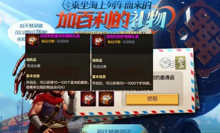 同時在加百利商店中出現了新的禮盒,比如“10~100個雷米援助”,或者“50~1000個爐巖炭”,都是靠運氣遇見的。