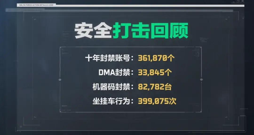 官方的重拳出擊很有效。前瞻直播表示,他們實施封禁超過十年的賬號達到了361870個,其中公認難以處理的DMA外掛就有3.3萬例封禁。官方對坐掛車行爲也絕不姑息,超39.9萬次坐掛車行爲得到懲治。