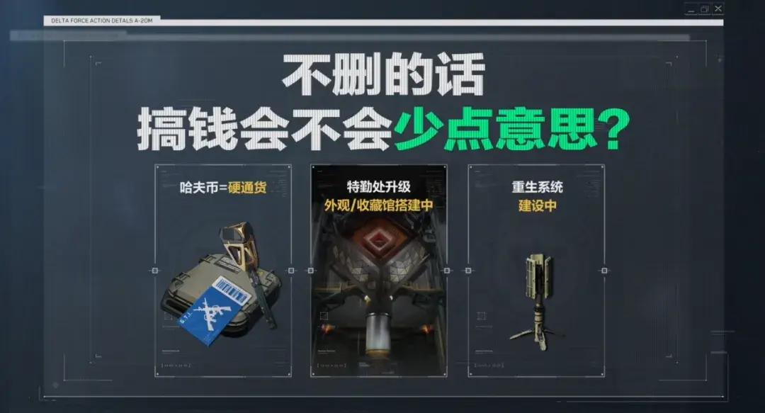 《三角洲行動》於直播中公開宣佈不刪檔,可這樣留給製作組要做的事情就多了:給新玩家制作合理的匹配和破產福利機制,讓他們活過新手期;給老玩家準備一系列有難度的終局遊戲內容,以及用遊戲內貨幣購買的外觀裝飾品,消耗過剩資產,讓他們重燃下圖的慾望。