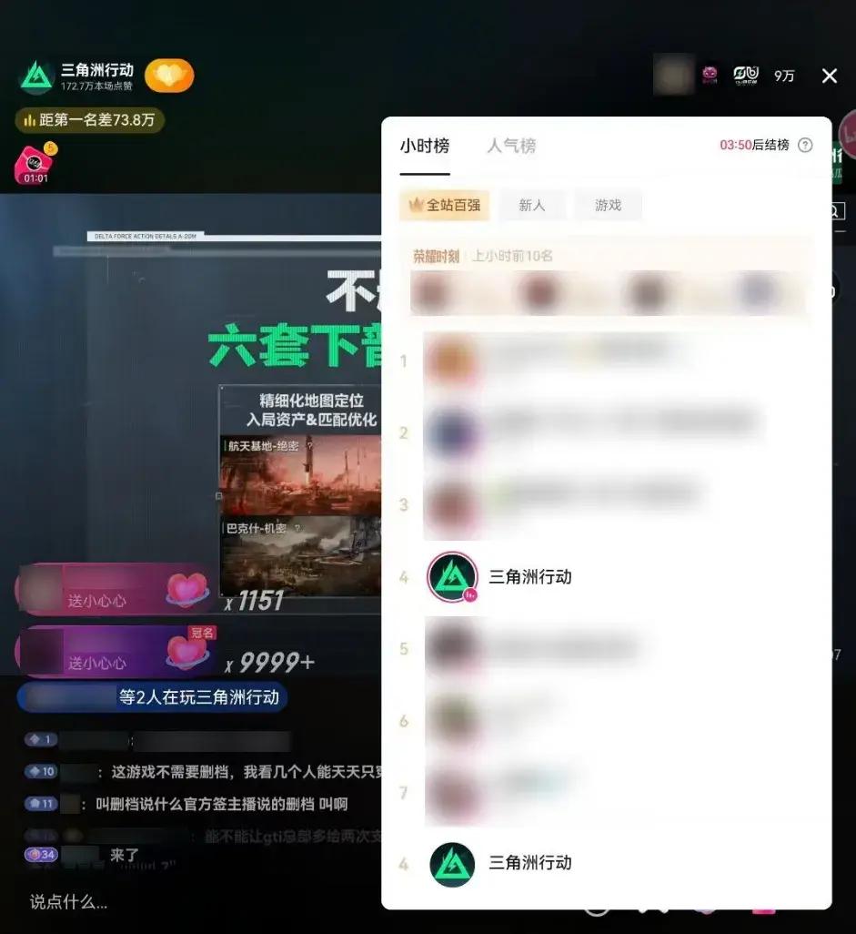 11月17日,官方公佈了第二賽季,即“聚變”賽季的前瞻直播,僅在抖音上就取得了人氣全站第四、遊戲榜第一。這兩天裏,《三角洲行動》相關的話題也屢屢佔據熱搜榜。