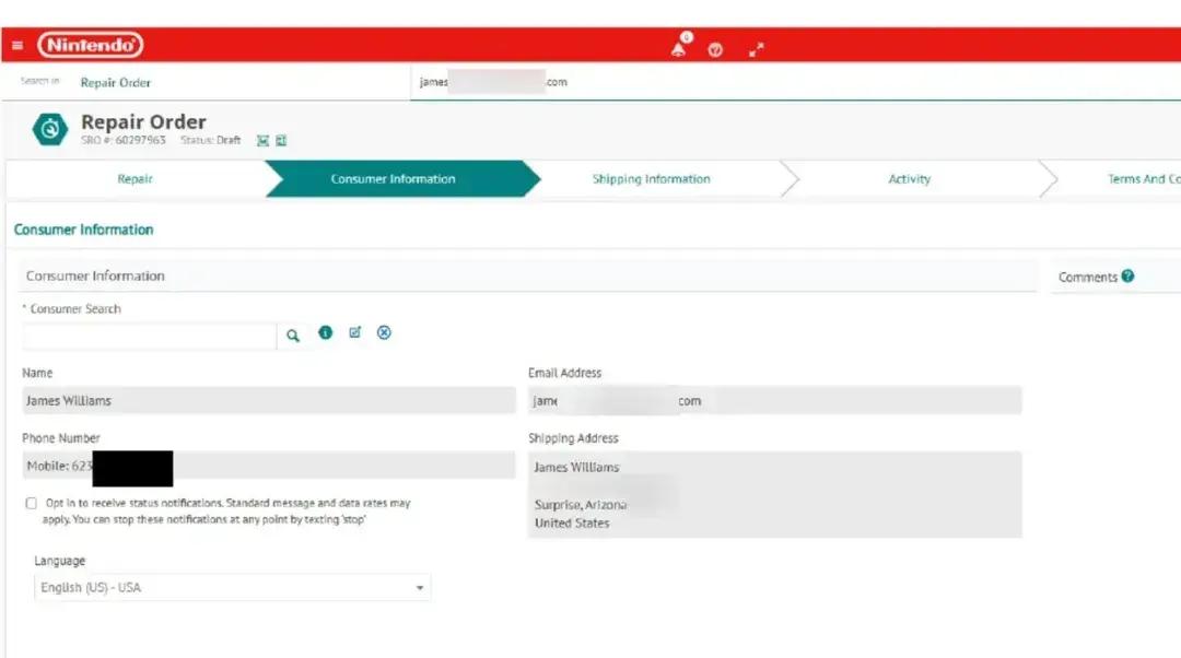 巧的是,當工作人員將兩份James Williams的信息輸入任天堂的維修跟蹤系統,發現兩份維修訂單恰好指向亞利桑那州同一個地址,甚至其中一份訂單兩天前才從任天堂維修部門寄出。