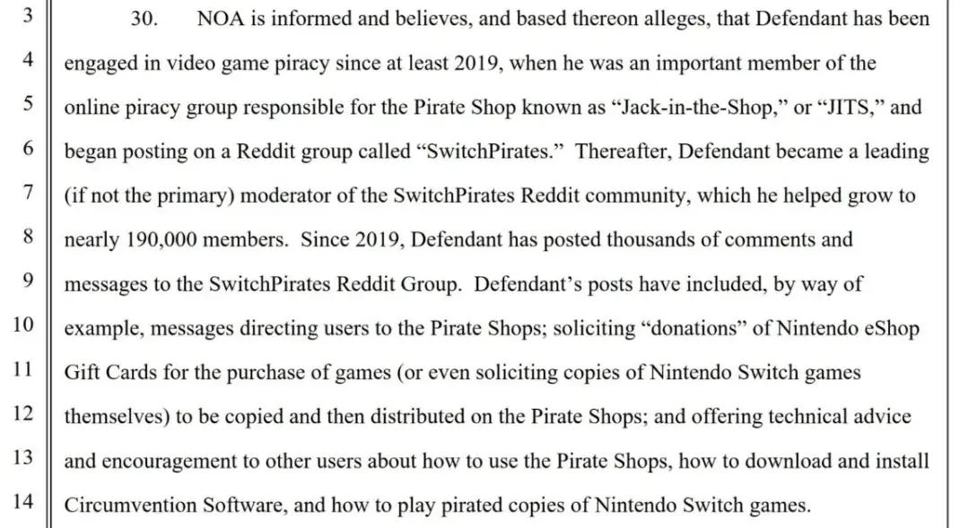 第二起訴訟則顯得有些撲朔迷離,起訴對象是亞利桑那州居民James Williams。任天堂稱James Williams不僅是多家在線盜版商店(FreeShop)的經營者、協助經營者和幕後推手,還是Reddit論壇“NS海盜”(SwitchPirates)版塊的版主“Archbox”,涉嫌教唆其他用戶繞過任天堂的技術保護措施,獲取盜版遊戲: