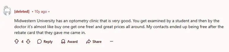 在這期間,一條來自2015年的帖子發揮了至關重要的作用:這條帖子發佈在“phoenix”(鳳凰城)版塊,帖主抱怨自己去當地眼鏡店驗光遇到隱形收費,Archbox出現在評論區中,提到“中西部大學附屬醫院的驗光體驗非常舒適”,推薦網友前去檢查。