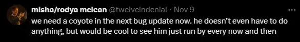 不過,Bug帶來麻煩的同時也給玩家帶來靈感和新的想象。“把Bug當Mod使”也是星露谷玩家習以爲常的事情,比如雞消失事件解決後,有人建議在遊戲中加入真正的土狼,但是要不偷雞隻供收養的類型,保留爲遊戲的特色;而在多人模式下使用炸彈導致遊戲崩潰的Bug,也可以被視作一種增添限制性的“極限挑戰”。
