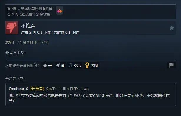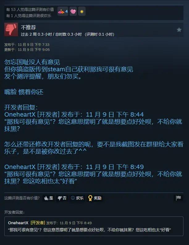他們本想爲當年的那份情懷補票,發現掛上Steam的其實是李鬼後,都無比堅定地站在版權方一邊。他們於Steam平臺及各大社區,將盜版行徑痛斥爲真正的“國恥”,哪怕不得不給假開發者送份遊戲錢,頂着刪評和永久封禁的壓力,也要留下一條醒目差評警示後來的玩家。