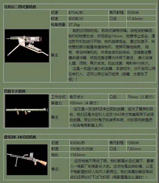 主角華成龍在過場動畫裏僅持有一把經典的駁殼槍,但實際流程中,他揹負各路長槍短炮,乃至在遊戲背景——淞滬會戰的5年後,才發明出的“巴祖卡”火箭筒。