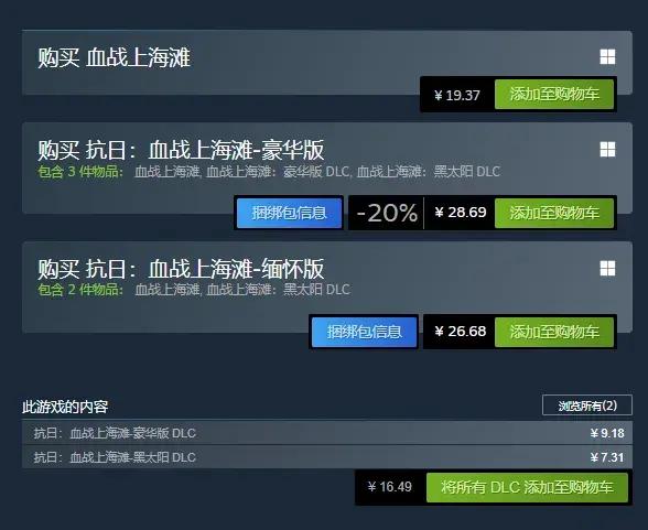 被一齊上架至Steam的兩個DLC,“豪華版”售價9.18元,“黑太陽”售價7.31元。