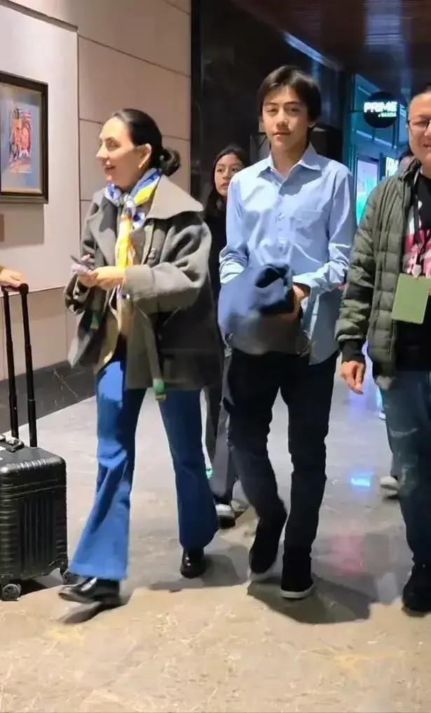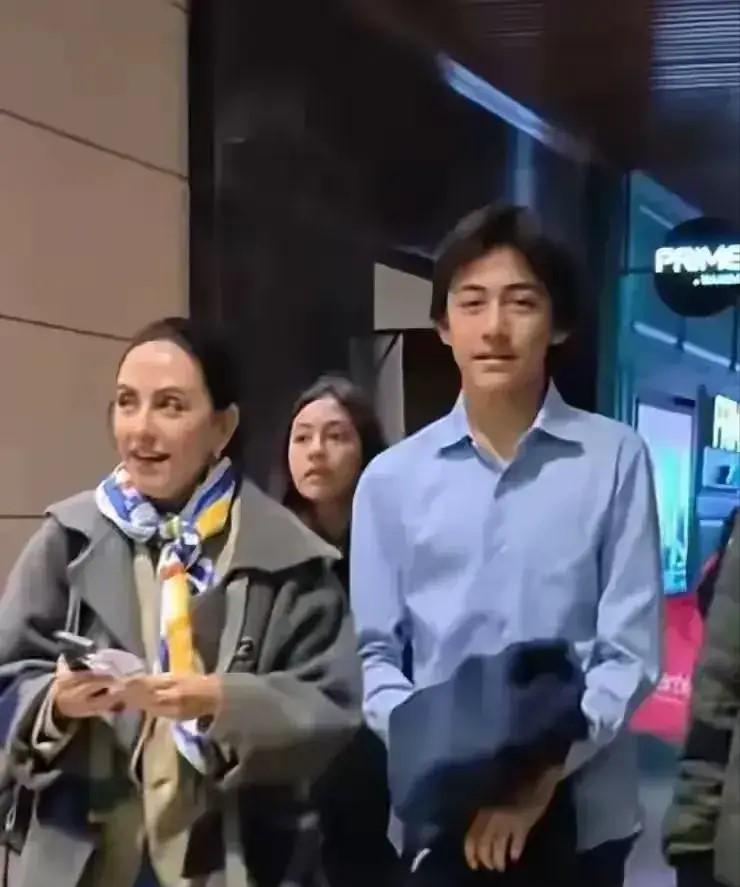 諾一和媽媽一起參加電影首映禮,她身穿藍色襯衫,姿態挺拔端正,身高都已經超過媽媽一個頭了,整個人看上去少年感十足,反倒是一旁的媽媽,穿着大衣配花絲巾,已經有了老態感,不得不說,外國人就是老的快。