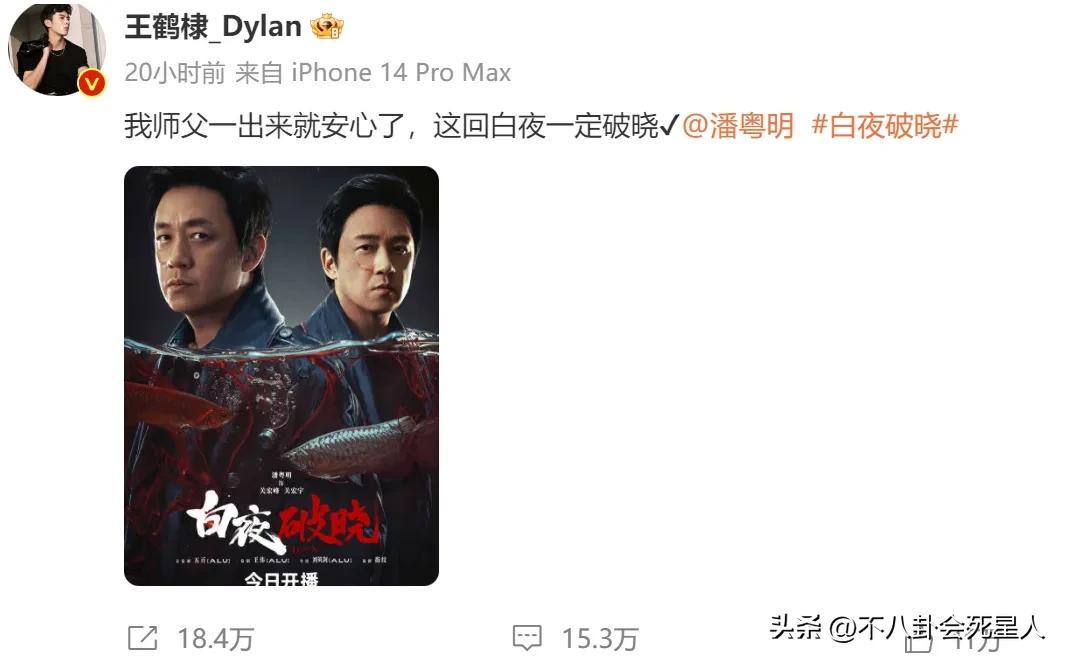 王鶴棣也在社交平臺爲“師父”打call,發文:我師父一出來就安心了,這回白夜一定破曉。