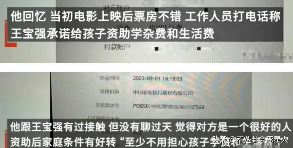 緊接着,又有貧困家庭小孩的父親出來發聲,自家的小孩確實受到了王寶強的資助,從小孩六年級到初一,大概收到了2萬元的資助,錢是王寶強方直接打到他們卡上的,每學期打一次,一次大概是五六千元。