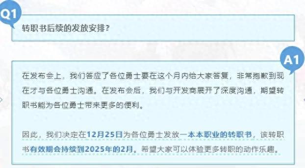 發放時間:12.25日,所有玩家將收到一本“轉職書”,其有效期將持續至25年2月。