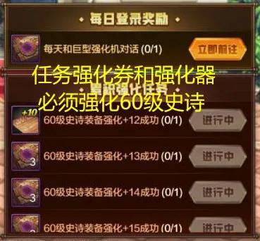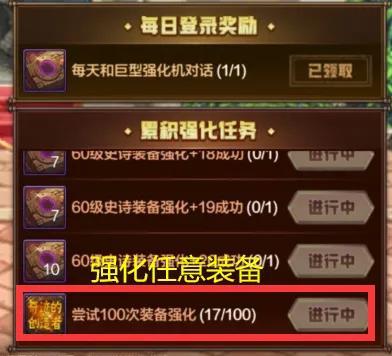 【5】累計任務想要拿到+10強化券和強化器,只能強化60級史詩!